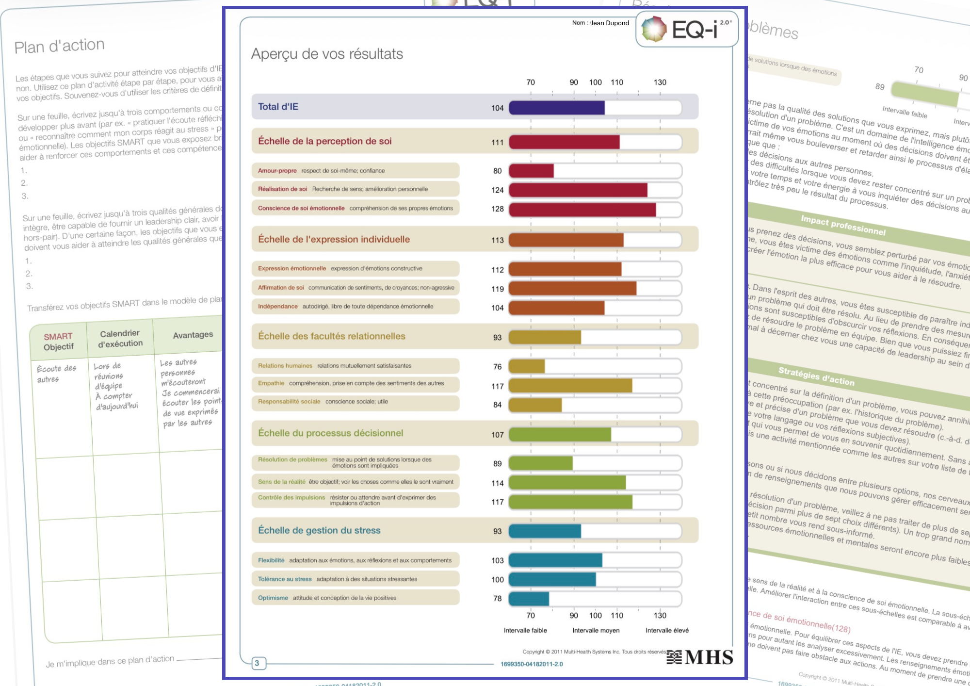 Le Test EQ-i® 2.0 vous fournit un rapport structuré et normé. Le débrief permet d'aller plus loin: comprendre vos résultats, identifier vos ressources principales et transformer les données en décisions concrètes.